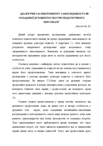 Бастун, Микола Володимирович (2013) Dialogical means the development of self-awareness as part of spiritual culture of the pedagogical staff . Імекс-ЛТД, м.Кіровоград, Україна, pp. 91-98.