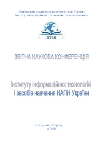 - ІІТЗН, НАПН України (2016) Reporting Scientific Conference of the Institute of Information Technologies and learning Tools of NAPS of Ukraine In: Звітна наукова конференція ІІТЗН НАПН України 2016 . ІІТЗН НАПН України, м. Київ, Україна, pp. 1-228.