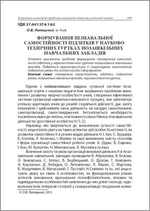 Стаття присвячена проблемі формування пізнавальної самостійності підлітків у науково-технічних гуртках позашкільних навчальних закладів. Подається характеристика її структурних компонентів, педагогічні умови та основні засоби її формування