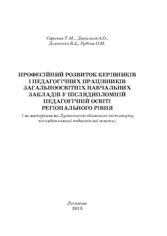 - Сорочан, Т.М. (orcid.org/0000-0002-4704-2385), Данильєв, А.О., Дьяченко, Б.А. and Рудіна, О.М. (2013) Professional development managers and teaching staff of secondary schools to postgraduate teacher education at the regional level (based Luhansk Regional Institute of Postgraduate Education) Project Report. СПД Рєзніков В.С, м. Луганськ, Україна.