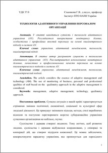 The article presents the essence of technology and adaptive management (AU). We consider the use of monitoring business, personal and professional qualities of staff based approach to system qualimetric AU.