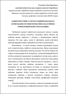 - Стечкевич, О.О. (2013) Competence and integrative approach to the system of vocational and practical skills of future professionals In: Соціальне партнерство як інструмент оновлення змісту професійно-технічної освіти . Інститут ПТО НАПН України, м.Кривий Ріг, Україна, pp. 158-160.