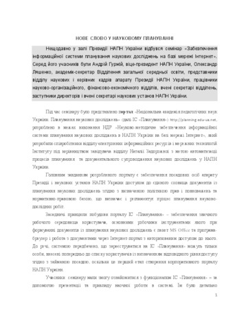 | Keywords: | R&D Management, NAPS of Ukraine, scientific research |