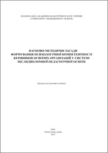 Scientific-methodical base of forming psychological competency of managers of educational institutions is substantiated in the manual, its sense, basic tendencies and indices of psychological competencies of managers are defined, model of forming of psychological competencies of managers of educational organizations is elaborated; possibilities of its realization in the system of post graduate pedagogical education for managers of educational institutions is substantiated. Scientific-methodical manual is intended for managers of educational institutions, postgraduate pedagogical education staff, psychologists who work in the system of education, Scientists who research psychological problems of improving post graduate pedagogical education management effectiveness and forming of psychological competency of professionals.
