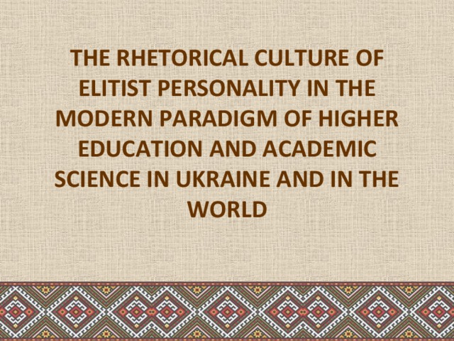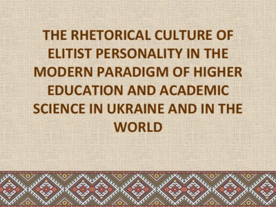 The Presentation «The Rhetorical culture of elitist personality in the modern paradigm of higher education and academic science in Ukraine and the world»