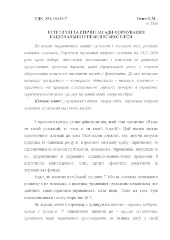 - Отич, О.М. (2016) Аesthetics and ethics principles of forming of the national administrative elite Вісник післядипломної освіти, 16 (29). pp. 116-122. ISSN 2218-7650