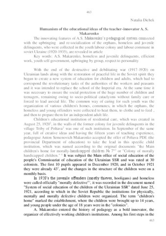 Dichek, N.P. (2013) Humanism of the educational ideas of the teacher-innovator A. S. Makarenko (42). Published by United Akademy of Science (Poland), м. Лодзь, Польща. ISBN 978-83-62916-62-7