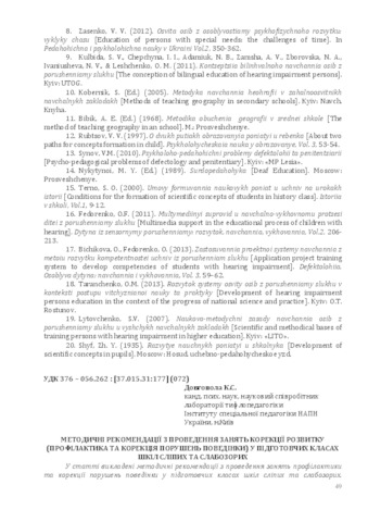 | Divisions: | Mykola Yarmachenko Institute of special education and psychology of National academy of educational sciences of Ukraine > Лабораторія тифлопедагогіки |