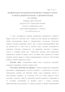 - Лісова, Н.І. (2017) Modernization of management department of education under decentralization fnd democratization Молодь і ринок, 3 (146). pp. 56-61.