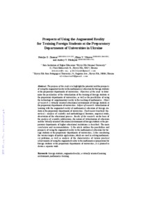 - Zinonos, N.O. (orcid.org/0000-0003-2159-1295), Vihrova, E.V. (orcid.org/0000-0003-3046-0801) and Pikilnyak, A.V. (orcid.org/0000-0003-0898-4756) (2018) Prospects of Using the Augmented Reality for Training Foreign Students at the Preparatory Departments of Universities in Ukraine Proceedings of the 1st International Workshop on Augmented Reality in Education Kryvyi Rih, Ukraine, October 2, 2018 (2257). pp. 87-92. ISSN 1613-0073