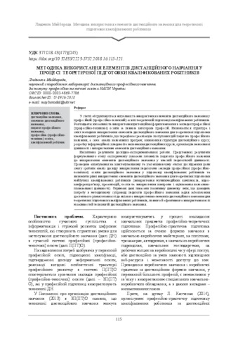 - Майборода, Людмила Анатоліївна (orcid.org/0000-0003-4869-7786) (2018) Methods of using elements of distance learning for the theoretical training of skilled workers Науковий вісник Інституту професійно-технічної освіти НАПН України. Професійна педагогіка, 16. pp. 115-121. ISSN 2223-5752 (Print); ISSN 2617-1759 (Online)