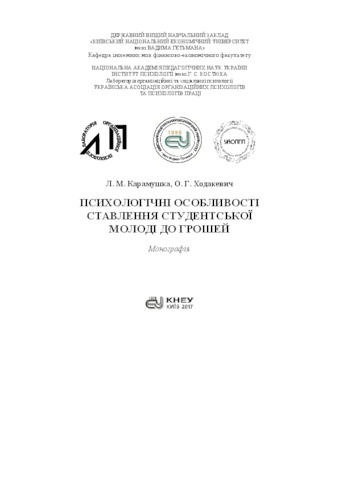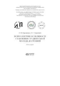 The monograph is devoted to the study of psychological features of student youth attitude to money. The work contains the theoretical substantiation, methodological principles and the results of empirical study on the problem. The essence of money and the main approaches to its study are analyzed. The peculiarities of the person's attitude to money (as one of the types of economic attitudes) are revealed, the analysis of its structure and main components are carried out. The psychological features of student youth, the role of formation of students’ attitude to money as an important component of economic socialization, as well as factors influencing the formation of students' attitude to money are determined. The results of empirical research of psychological features of students’ attitude to money are presented. The general attitude of students to money and the assessment of the role of money in their life are analyzed. The attitudes of students to different ways of getting money and earning money are determined. The role of students' own activity and social environment in formation of their attitudes to money is highlighted. The role of higher educational establishments in promoting the combining of students' learning, work and making money is revealed. The relationship between the students’ attitude to money and the factors of meso and micro level is shown. The training "Psychological Features of Students' Attitudes to Money" is developed and tested. The monograph is intended for heads and employees of higher education, students, organizational and economic psychologists, scientists, as well as for all those who are interested in psychological problems of formation of a person's attitude to money.