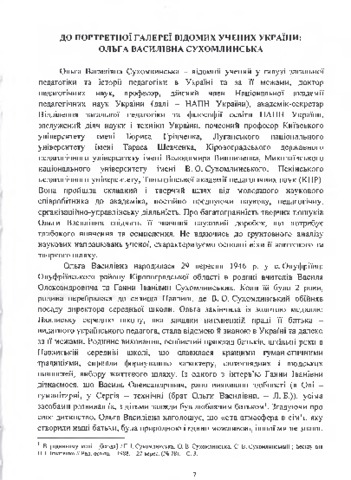 - Березівська, Лариса Дмитрівна (orcid.org/0000-0002-5068-5234) (2016) To the portrait gallery of famous scientists of Ukraine: Olga Vasylivna Sukhomlynska Сухомлинська Ольга Василівна. Біобібліографія. pp. 7-17.