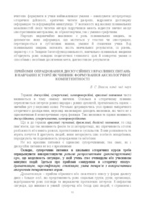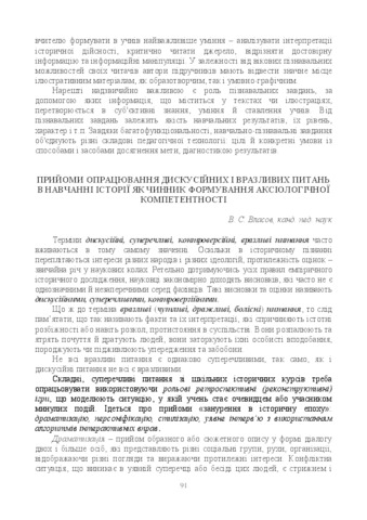 The theses cover techniques for working out discussion and vulnerable issues in the study of history in the process of formation of the axiological competence of students of the main school.