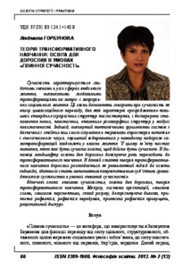 - Горбунова, Л.С. (2013) Теорія трансформативного навчання: освіта для дорослих в умовах «плинної сучасності» Філософія освіти, 2 (13). pp. 66-113. ISSN 2309-1606