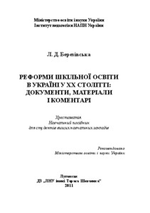 Березівська, Лариса Дмитрівна (orcid.org/0000-0002-5068-5234) (2011) teaching reform education in Ukraine in the twentieth century: documents, materials i comments , 2 (1). ДЗ „ЛНУ імені Тараса Шевченка”, м. Луганськ, Україна. ISBN 978-966-617-253-5