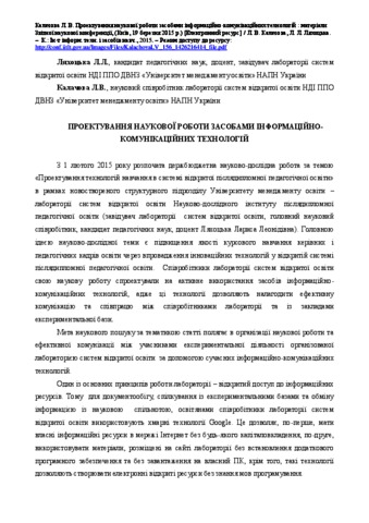 Калачова Л.В., Ляхоцька Л.Л. Проектування наукової роботи засобами інформаційно-комунікаційних технологій (1).pdf Download (229kB) | Preview |