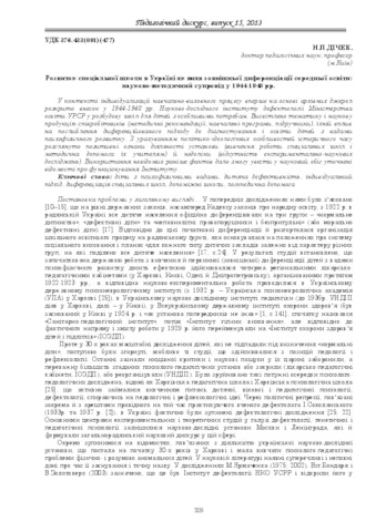 - Дічек, Наталія Петрівна (2013) Development of the special school in Ukraine as a display of external differentiation of secondary education: scientifically-methodical accompaniment in 1944-1948 Педагогічний дискурс, 15. pp. 209-217. ISSN 2309-9127
