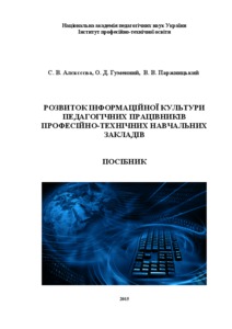 Алєксєєва, С.В. (orcid.org/0000-0002-8132-0465), Гуменний, О.Д. (orcid.org/0000-0001-6596-3551) and Паржницький, В.В. (2015) Development of information culture of pedagogical workers at vocational schools . Інститут ПТО НАПН України, м. Київ, Україна. (In Press)