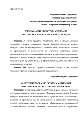 - Морозова, М.Е. (2015) Improvement system of motivate staff in higher educational institutions Нові технології навчання, 84. pp. 82-86.