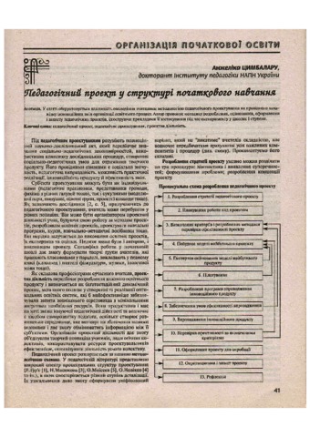 - Цимбалару, Анжеліка Дмитрівна (2011) Teaching Project in the structure of primary education Початкова школа, 4 (502). pp. 41-44. ISSN 0131-5358