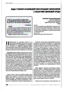 The article described types of educational interaction with the objects of younger students of the educational environment. The starting position for the interpretation of specific student elected position in the interaction and the results of their development of the school environment.