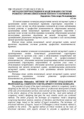 - Бородієнко, О.В. (2015) Method of expert evaluation in professional competency development system modelling Науковий вісник Ужгородського національного університету: Серія «Педагогіка. Соціальна робота», 35. pp. 35-38.