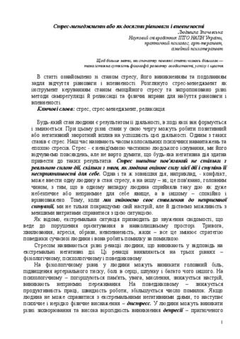 - Злочевська, Л.С. (2014) Stress-management or how to attain an equilibrium and confidence Професійно-технічна освіта, 2 (63). pp. 47-48.