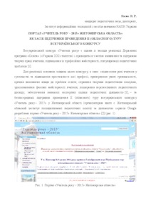 - Колос, К.Р. (2015) Website “Teacher of the Year – 2015” Zhytomyr region" how funds support Conducting II (oblastnoho) round of the All-Ukrainian competition In: Reporting Scientific Conference of the Institute of information technology and learning NAPS Ukraine . ІІТЗН НАПН України, м. Київ, Україна, pp. 1-3.