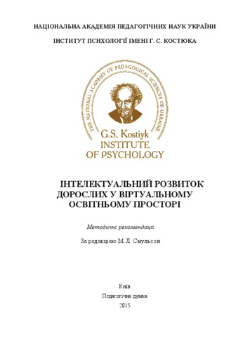 Guidelines prepared by specialists of department of modern Information Technologies of education of G.S. Kostiuk Institute of Psychology NAPS of Ukraine, is devoted to psychological, pedagogical and technological principles of designing distance learning courses of adult intelligence. The basic concepts is related to virtual educational space, distance learning efficiency factors, structure, development and self-development of intelligence of an adult. Design technologies of developing environments for intellectual and creative training of adults, quality of life connected with adult intellectual development, intellectual support for the elderly, the training of communication and communicative competence and design activity of adults in distance format are described. Guidelines addressed for scientists and practical psychologists, educators, designers and programmers, distance learning specialists in various fields who are interested in understanding and active development of modern information technologies of education.