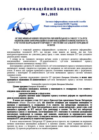 Review of European Unions’ international projects in the field of evaluation information and communication competence of the actors for educational process of general secondary education.