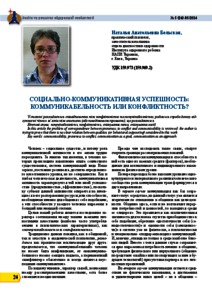 - Бельська, Н.А. (2014) Social and communicative successes: communicability and/or proneness to conflict Освіта та розвиток обдарованої особистості, 5 (24). pp. 24-28. ISSN 2309 ‑3935