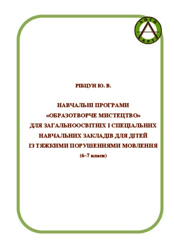 - Рібцун, Юлія Валентинівна (orcid.org/0000-0002-2672-3704) (2015) Educational program "Fine Arts" (6-7 grade): set of training programs for 6-7 graders special general education for children with severe speech disorders [Teaching Resource]