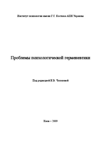 In the monograph we discuss the theoretical, methodological and applied problems of psychological hermeneutics as areas of research, which study the problems of understanding and interpretation of reality, including the psychic reality of man, his personal experience. The monograph is addressed to teachers of psychology of higher educational institutions, graduate students, practical psychologists, all experts who work on the problem of understanding and interpretation.