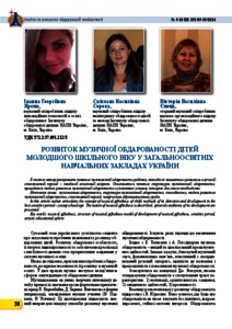 - Ярема, Іванна Георгіївна, Сорока, Світлана Василівна and Ємець, Вікторія Василівна (2014) Development of music giftedness of children of young school age at secondary educational institutions Освіта та розвиток обдарованої особистості, 9-10 (28-29). pp. 38-40. ISSN 2309 ‑3935