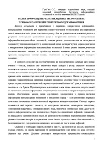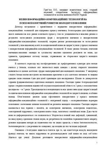 - Гриб'юк, О.О. (2015) The impact of ICT on the development of the young generation of psychophysiological In: Звітна конференція Інституту інформаційних технологій і засобів навчання НАПН України . Інститут інформаційних технологій і засобів навчання НАПН України, м.Київ, Україна.