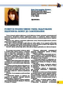 - Якимова, Ірина Олександрівна (2013) The development of reflective abilities of gifted teenagers on the road to self-discovery Education and Development of Gifted personality, 7 (14). pp. 61-63. ISSN 2309-3935