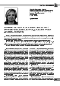 - Вінник, Н.Д. (2013) Scientific and methodological principles of personal development intellectually gifted students: experienced component Education and Development of Gifted personality, 8-9 (15-16). pp. 101-104. ISSN 2309-3935