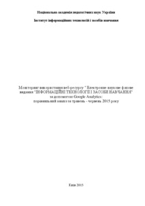 - Шиненко, М.А., Сороко, Н.В. and Ткаченко, В.А. (2015) Monitoring the use of website "Electronic scientific specialized edition of" Information Technology and Learning Tool "using Google Analytics: comparative analysis in May - June 2015 [Experiment]