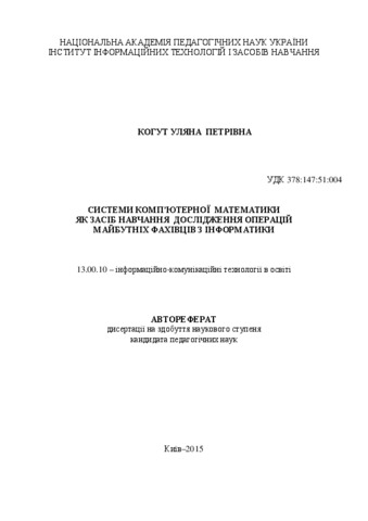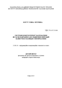 - Когут, У.П. (2015) Systems of computer mathematics as a teaching tool for future operations research experts in informatics Dissertation candidate2 thesis, Інститут інформаційних технологій і засобів навчання.