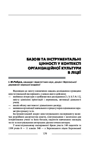 - Рябуха, І.М. (2015) Basic and instrumental values in the context of organizational culture in a lyceum In: Modern progress of organizational culture trends are in informative society, 10.04.2014 року, м.Київ, Україна.