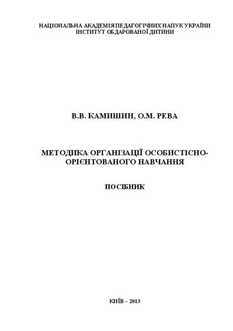 Камишин, Володимир Вікторович and Рева, Олексій Миколайович (2013) Methods of organization of self-centered learning . Institute of Gifted Child of NAPS of Ukraine, м.Київ, Україна.