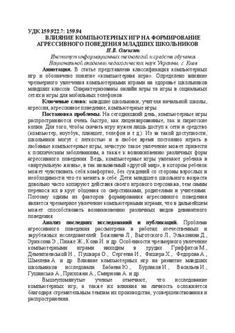 - Олексюк, Н.В. (2015) The impact of computer games on the formation of the aggressive behavior of younger schoolboys ХІ Международная конференция «Стратегия качества в промышленности и образовании» Материалы. В 2-х томах. Том II.. pp. 463-467.