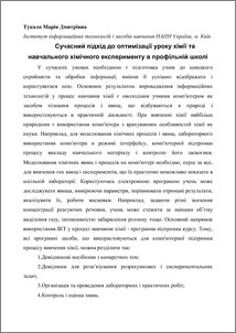 - Тукало, М.Д. (2013) Сучасний підхід до оптимізації уроку хімії та навчального хімічного експерименту в профільній школі In: Наука: теория и практика - Nauka: teoria i praktyka (6). Nauka i studia, Польща, Варшава, Польща, pp. 72-75. ISBN 978-966-8736-05-6