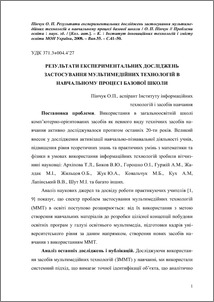 Представлено результати експериментальних досліджень застосування мультимедійних технологій у процесі навчання фізики базової школи. Досліджено роль мультимедійних технологій як засобу організації педагогічної взаємодії у навчальному середовищі загальноосвітньої школи.