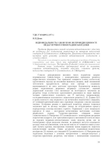 - Дічек, Наталія Петрівна (2005) Liability and responsibility as a leading educational values of ethics Soviet era Збірник наукових праць Полтавського державного педагогічного університету ім. В.Г. Короленка, 5 (44). pp. 68-74.