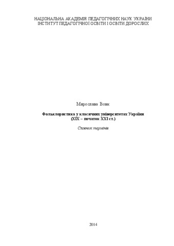 - Вовк, М.П. (2014) Folklore in classical universities of Ukraine (XIX - the beginning of XXI century.): Glossary [Teaching Resource]