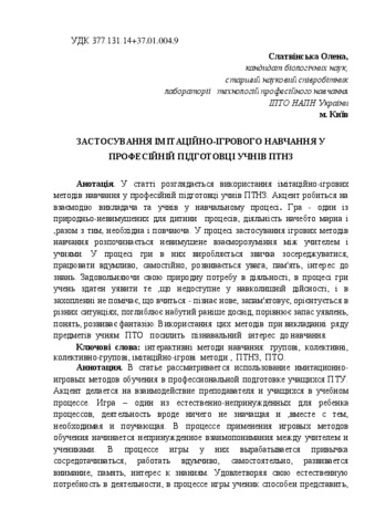 - Слатвінська, О.А. (2015) Use of simulation and game-based learning in the training of vocational school students Теорія і методика професійної освіти, 6.