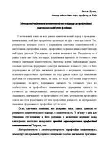 The aim of this report is to prove methodological requirements of the competence approach to the professional training of the would-be specialists that substantially change the goals, contents, forms, methods and results. It describes the main qualities of professional competence: ability to be above all subjects and interact with them; versatility; multifunctionality; complexity; multidimensionality; autonomousness.