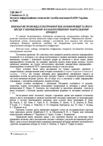- Словінська, О.Д. (2013) Webinar as a variety of web e-conference and its place in a networked collaborative learning process Інформаційні технологіїв освіті, 17. pp. 173-177. ISSN 1998-6939